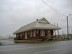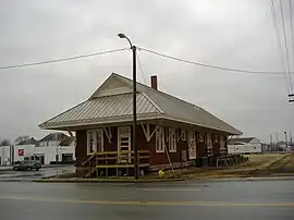 Three separate railroads once used the facilities here. These railroads included the Jeffersonville Railroad and the Ohio and Mississippi Line. These facilities included a roundhouse repair shop, the Adams Express Company, and access to interurbans. A passenger depot located next to the freighthouse has been demolished. The Freighthouse has display detailing the history of railroads in Jackson County.[2][3]