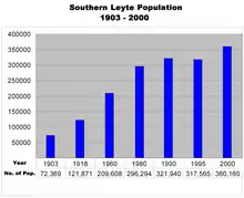 A graphical presentation of Southern Leyte's 1903–2000 population depicting the negative growth rate in 19992000 records