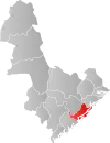 Traditionally, the easternmost border of Agder was Rygjarbit, which was thought to be Gjernestangen in the present-day municipality of Risør, but it could also be the strait between Askerøya and Lyngør in Tvedestrand.[7]