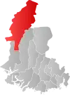 About 80% of the population of the two counties live along the coast, which has the warmest climate in Norway as well as offering quick access to the rich fishing grounds and maritime routes of the Skagerrak.[2] In Southern Norway there are also a number of less populated inland municipalities. The list of the municipalities in Southern Norway are: