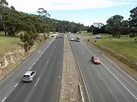 The Southern Outlet is a major highway in the Tasmanian capital of Hobart and acts as one of the city's 3 major radial highways, connecting traffic from the Hobart city centre with commuters from the southern suburbs as well as intrastate traffic from the south of the state.[2] It is one of the busier commuter highways in Hobart, handling in excess of 31,000 traffic movements each day.[3]