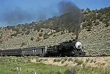 On April 22, 1980, No. 1744 was purchased by the New London and Village Incorporation, and it was moved by truck to Heber City, where it was given a major rebuild in the locomotive shops. In the Labor Day weekend of that year, No. 1744 was back under steam and was ready to operate on the Heber Creeper Tourist Railroad.[7] There, No. 1744 would operate alongside some other active steam locomotives, including Union Pacific 2-8-0 No. 618, Sierra Railway 2-8-2 "Mikado" No. 36, and Santa Maria Valley 2-8-2 No. 100. No. 1744 would also perform some famous doubleheaders with the other locomotives, which would also only happen on Labor Day weekends. As the decade progressed, however, the Heber Creeper was running into some financial trouble, and they slowly struggled to operate any more trains. No. 1744 made its last run in Heber on December 3, 1989, when it pulled the Santa Claus Express, and its fire was dropped once again.