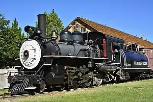 No. 18 was originally built in 1911 for the Nevada–California–Oregon Railway (NCO) as No. 12 until it was sold to Southern Pacific (SP) in 1926.[1] It was renumbered to 18 and worked the rest of its career on SP's narrow-gauge lines along with sister locomotives Nos. 8 and 9, serving the desert areas of Nevada and California.