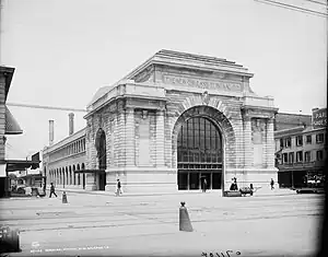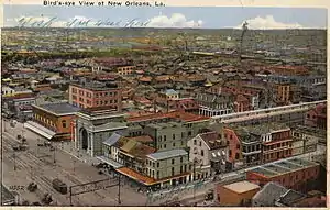 The Southern Railway Terminal, originally officially "New Orleans Terminal", in New Orleans was constructed by the Southern Railway in 1908 on the neutral ground of Basin Street at the intersection of Canal Street. The building was designed by Daniel Burnham, who was also the architect for the Union Station in Washington D.C. The station also served the New Orleans and Northeastern Railroad and the New Orleans Terminal Company.[1] It was the terminus for many of Southern's premier trains, most notably the Crescent. As such, it was the "front door" to New Orleans for many passengers from the Northeast for most of the first half of the 20th century. The Gulf Mobile & Ohio Little Rebel trains also operated into Terminal Station.