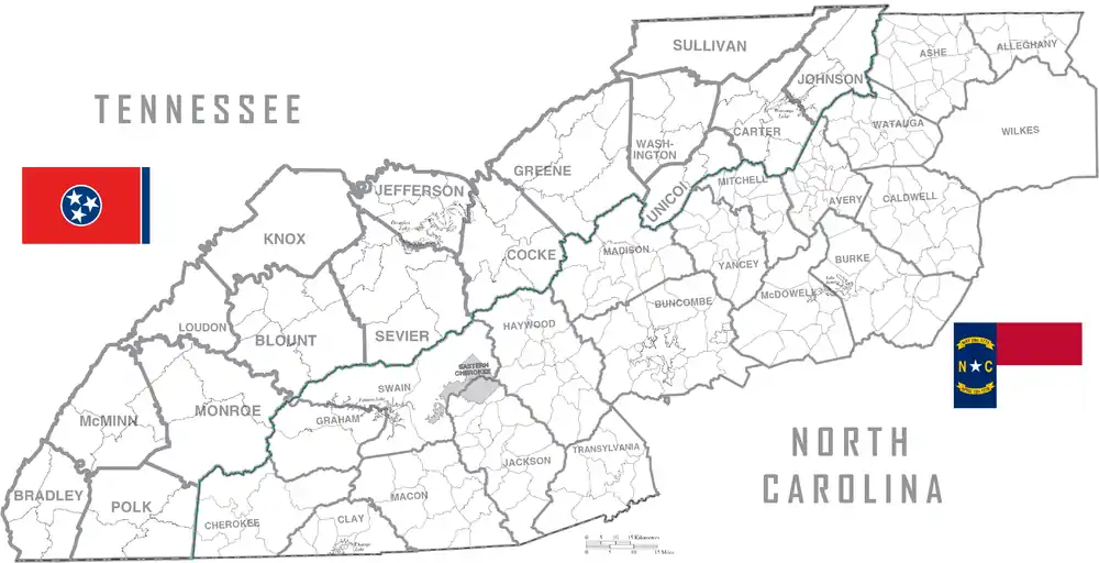 Most of these mountains are located in the Great Smoky Mountains National Park (abbreviated GSMNP in the list), Mount Mitchell State Park (MMSP), along the Blue Ridge Parkway (BRP), or in the Cherokee or Pisgah National Forest. There are a few, though, that are located on private property. All of these mountains are located within 32 miles (51 km) of the North Carolina - Tennessee border,[1] with 12 on the state border itself and many more on various county borders.