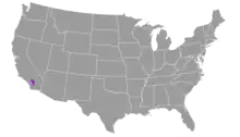 The southern rubber boa is distributed across the San Bernardino and San Jacinto Mountains east of Los Angeles in southern California, at elevations between 4,900 and 7,900 feet. Phylogenetic analyses have conclusively distinguished northern and southern boas and identified an area in Northeastern California containing populations of both subspecies.[7] Some intergrades between northern and southern boas have been located in isolated populations in the Southern Los Padres Ranges.[7][8]