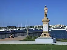 On 25 April 1922 (ANZAC Day), Southport War Memorial located at the foot of Nerang Street was dedicated by the Member of the Queensland Legislative Assembly for Albert, John Appel, in the presence of many Southport people.[42] In 2010, renovation of the parklands required the relocation of the memorial; it was re-dedicated on 11 November 2010.[43]