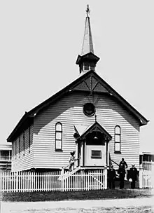 In 1879, the first Congregational services were held in Southport in the home of J. C. Lather conducted by the Reverend J. Whiting who ministered in the Logan and Albert River districts. Land was purchased in Queen Street and a Congregational church was opened there on 9 October 1880.[15] It was used for monthly Congregational services but was also available for use by other denominations. The first minister, Reverend A.R. Bailey was appointed in 1883. A manse was built in Bauer Street. J.B. Evans was the minister from late 1885, being replaced by J. G. Cribb in 1887. In 1888 a new Congregational Church was erected in White Street costing £530 and based on the designs prepared for the Milton Congregational Church in Brisbane. In 1899, the manse was relocated to behind the White Street church.[16]