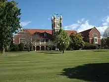 The Southport School is an Anglican primary and secondary (Preparatory to Year 12) school for boys at Winchester Street (27°58′58″S 153°24′52″E / 27.9828°S 153.4145°E).[86][96] In 2018, the school had an enrolment of 1,551 students with 132 teachers (126 full-time equivalent) and 103 non-teaching staff (86 full-time equivalent).[88] The school has a well-known clock tower and chapel. It is also one of the few schools in Australia where cadet service is mandatory.[97]