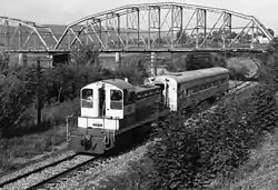 ![]() Mainline passenger train runs utilizing equipment of Southwind Rail Travel Limited between Pittston, Pennsylvania, over the Pocono Northeast Railroad to Wilkes-Barre, Pennsylvania, commenced in the fall of 1983. | |