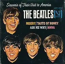 Souvenir of Their Visit to America is an EP of music by English rock band the Beatles. Released on 23 March 1964, it is the first of three Beatles EPs released in the United States and the only one released by Vee-Jay Records. The EP features four songs that had previously been released by Vee-Jay on their Introducing... The Beatles album. This EP did not chart.