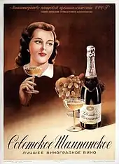 Sovetskoye Shampanskoye (Сове́тское шампа́нское, 'Soviet Champagne') is a generic brand of sparkling wine produced in the Soviet Union and successor states. It was produced for many years as a state-run initiative. Typically the wine is made from a blend of Aligoté and Chardonnay grapes.