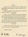 It was signed by Estonian Minister of Foreign Affairs Karl Selter and Soviet Commissar of Foreign Affairs Vyacheslav Molotov. Ratifications were exchanged in Tallinn on 4 October 1939 and the treaty became effective on the same day. It was registered in League of Nations Treaty Series on 13 October 1939.[2]