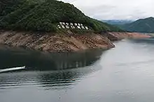 The Soyang Dam, also referred to as the Soyanggang Dam, is an embankment dam on the Soyang River, 10 km (6 mi) northeast of Chuncheon in Gangwon-do Province, South Korea. The purpose of the dam is flood control, water supply and hydroelectric power generation. Construction on the dam began in 1967 and was complete in 1973. The 123 m (404 ft) tall dam withholds a reservoir of 2,900,000,000 m3 (2,351,068 acre⋅ft) and supplies water to a 200 MW power station.[2][3]
