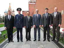 ![]() From left to right: Furukawa, Fossum and Volkov Soyuz programme (Crewed missions) | |