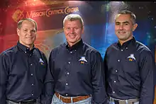 ![]() (l-r) Ford, Novitskiy and Tarelkin Soyuz programme (Crewed missions) | |
