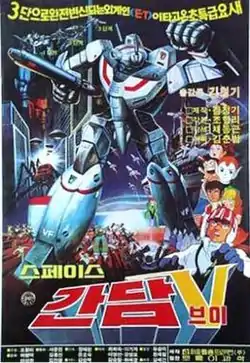 Space Gundam V (스페이스 간담브이) (sometimes spelled Space Gandam V) is a South Korean animated film directed by Kim Cheong-gi, released on July 21, 1983. Despite its title, the series is not related to Mobile Suit Gundam. It is known for incorporating an unlicensed version of the VF-1J Valkyrie of Macross fame and the heroic elements of Brave Raideen.[1]