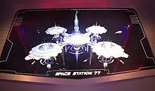 Inside the Space station, the planet screen at the front of the station had been changed to reflect the overlay, as well. While viewing the planet, a green "storm" appeared over the planet, causing interruptions to the video feed. Static appeared, then a blue screen, reminiscent of the Windows Blue Screen of Death, saying "LOSS OF SIGNAL...," "SEARCHING..." and "SIGNAL ESTABLISHED".