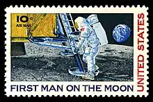 Postage Stamp depicting Neil Armstrong's first steps on the moon