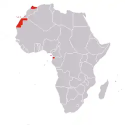 - Spanish Sahara (1884–1976), which included the provinces of Río de Oro and Saguia el-Hamra, now Moroccan-administered Western Sahara