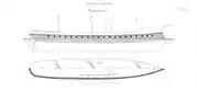 Plan and right-elevation drawing of Numancia; the shaded areas show armor protection