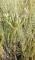 The shrub grows upright and grows 1.5 m (4.9 ft) tall and flowers from September to December. The plant dies after a fire but the seeds survive. The plant is bisexual and pollinated by insects. Two months after the plant has flowered, the ripe seeds fall to the ground where they are spread by ants.