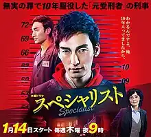 Specialist (スペシャリスト) is a Japanese television drama series that premiered on TV Asahi on 14 January 2016.[1] It was previously aired as Saturday Night drama from 2013 to 2015.[2] In this drama, Tsuyoshi Kusanagi, a member of SMAP, played the lead role, Kaho Minami, Yūta Hiraoka and Natsuna appeared in supporting roles.[3] The first episode received a viewership rating of 17.1%, and its overall average was 12.0%.[4] It was Sei Ashina’s final television role before her death in 2020.