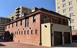 The building is the work of master builder John McGregor and was completed in 1905. It was built to service the residence of Southern Railway president Samuel Spencer.[2] The two-story structure features modest brick detailing, a hipped roof, and cupolas. The building has housed a nightclub and is now a private residence. It has been listed on the District of Columbia Inventory of Historic Sites since 1995 and it was listed on the National Register of Historic Places in 1996. It is a contributing property in the Dupont Circle Historic District.