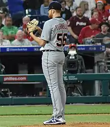 The Tigers added him to their 40-man roster after the 2017 season.[8] He returned to Erie in 2018.[9] He started 13 games for the SeaWolves and then two games for the Toledo Mud Hens of the Triple–A International League, before the Tigers promoted him to the major leagues on September 11.[10] He made his major league debut on September 14, pitching a 1-2-3 inning of relief with one strikeout against the Cleveland Indians.[11] He finished 0–2 in 4 appearances for Detroit.