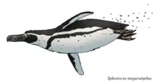 Spheniscus megaramphus (from Greek; megas, 'large', and ramphos, 'beak') is an extinct species of penguin that lived during the Late Miocene (present Peru) South America.[1][2] It is notable for being the largest known species of banded penguin, along with having a proportionally large beak.