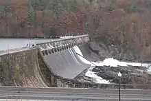 The Spier Falls Dam is a hydroelectric dam on the Hudson River between the towns of Moreau and Lake Luzerne, New York.