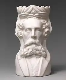 A spill vase, or spill holder is a small cylindrical vase or wall-hanging vase for containing splints, spills, and tapers for transferring fire, for example to light a candle or pipe from a lit fire. From the documentary record, they probably date back to the 15th century, though the heyday of specially made vases is the 19th century. Spills are made of tightly rolled paper tapers or very thin wood sticks; spill vases are mostly made of pottery, including porcelain, but a variety of other materials were used, such as wood, iron, brass, or even wall paper. There are also some examples made in glass, although these are mostly limited to the 1840s-50s.[1]