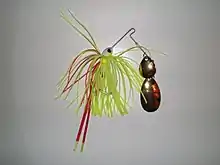 Spin fishing is an angling technique where a spinnerbait, a type of hybrid fishing lure with at least one freely rotating blade, is used to entice the fish to bite. When the line is reeled back, the spinnerbait blades will spin passively with oncoming the water flow, in turn stirring up significant amount of turbulence and noise, which transmit through the water and provoke predatory fish to strike the lure out of their foraging as well as territorial instincts. Spin fishing is used in both freshwater and marine environments.