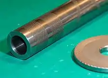 Spiral groove bearings (also known as Rifle bearings) are self-acting (journal and thrust), or hydrodynamic bearings used to reduce friction and wear without the use of pressurized lubricants. They have this ability due to special patterns of grooves. Spiral groove bearings are self-acting because their own rotation builds up the pressure needed to separate the bearing surfaces. For this reason, they are also contactless bearings.