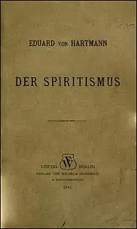 Spiritism (German: Der Spiritismus) is an 1885 book by German philosopher Eduard von Hartmann, the author of the famous treatise Philosophy of the Unconscious.[1][2] In professor Corinna Treitel's opinion, publication of this book became one of the "key events" in history of the "German occult movement."[3] This book was "one of the first works to attempt a complete psychological explanation of all occult phenomena."[1] According to Charles Massey, one of the founders of the Society for Psychical Research, publication of this book made the "most brutal blow" out of all ones that were ever directed against Spiritualism.[4][note 1]