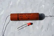 One of Sprague Electric's biggest contributions to the war effort was in the manufacturing of the variable timing proximity fuse.[1] The proximity fuse was a small transmitter (and in some cases a receiver) built on a bomb or artillery shell that would detonate the bomb or shell before impact, causing greater destruction. Sprague Electric continued to make capacitor and resistive components to meet military requirements of quality and reliability. Robert C. Sprague was also a member of War Production Board for the Advisory Committee on Capacitors (1942-1945).