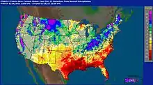 The Gravity Recovery and Climate Experiment (GRACE) satellites indicated a continued water storage increase over the Missouri River Basin (MRB) prior to the 2011 flood event.[45] A 2014 study[46] examined what climate forcing conditions preceded the long-term changes in these variables. It was found that precipitation over the MRB undergoes a profound modulation during the transition points of the Pacific quasi-decadal oscillation and associated teleconnections. The results infer a prominent teleconnection forcing in driving the wet/dry spells in the MRB, and this connection implies persistence of dry conditions for the next 2 to 3 years.
