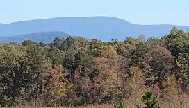 Springer Mountain is a north–south-trending loaf-shaped mountain located on the border of Gilmer and Fannin counties.[5][3] The summit has an elevation 3,782 feet (1,153 m) above mean sea level.[1] Springer Mountain is part of the Blue Ridge Mountains that extend from Georgia to Pennsylvania. Springer Mountain divides the northern and southern extensions of the Blue Ridge in Georgia, with one branch heading northwest to the Cohutta Mountains and the other branch heading southwest to Mount Oglethorpe.[3] Springer Mountain is located inside the Chattahoochee National Forest, as well as the Ed Jenkins National Recreation Area.[6]