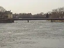 Peebles Island is part of the Peebles Island State Park, an undeveloped park with recreational hiking paths and remnants of historical battleworks thrown up during the US Revolutionary War. The New York State Office of Parks, Recreation and Historic Preservation headquarters is located on the island.[3] There is a public fishing site on the northern end of Simmons Island,[5] and Peebles Island has shoreline fishing spots and areas where the river can be safely waded in.[14] All fishing in the sprouts is catch and release due to the presence of PCB.[3] A former railroad bridge over the Second Branch, variously referred to as the Black, Delaware, or Cohoes–Green Island bridge was renovated as part of a bike/hike trail connecting the cities and villages of Watervliet, Green Island, Cohoes, and Waterford.[15] A visitor's center with public docks are on the northern shore of the Fourth Branch in the village of Waterford.