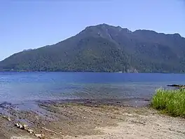 The Spruce Railroad Trail (sometimes called Lake Crescent Trail) is a rail trail located on the shores of Lake Crescent about 20 miles (32 km) west of Port Angeles, Washington, and is part of the 134-mile-long Olympic Discovery Trail. The trail follows the former Port Angeles Western Railroad grade along the shores of Lake Crescent. Built during World War I for the Spruce Production Division to transport spruce from the western Olympic Peninsula for the aircraft industry, the railroad was completed in 1919, a year too late for its intended purpose; it was then abandoned in 1951.[1] The trail is approximately 4 miles (6.4 km) one way, and trailheads exist at both ends. The trail is fairly level in most spots and could be hiked by most amateur hikers. Points of interest include the McFee Tunnel, a bridge that spans a bay called Devils Punch Bowl, and Harrigan Point.