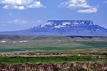 Square Butte also forms a unique and easily visible landmark on the horizon. It is visible from Montana Highway 3 between Geyser and Stanford, Montana. It is also visible from Montana Highway 80 between Stanford and Geraldine, Montana, which passes just to the east of the butte.[2] The small almost dormant town of Square Butte, Montana lies just at the base of the Chouteau County butte, on Montana Highway 80. About 4 miles (6.4 km) to the west of Square Butte is a smaller feature, Round Butte.