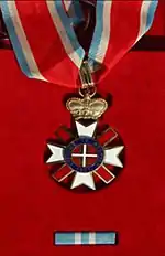 Sretenje Order (Serbian Cyrillic: Сретењски орден, romanized: Sretenjski orden) is the fourth highest state order of Serbia. The order is awarded by the decree of the President of the Republic on special occasions, typically at the ceremonies held on the Statehood Day. It is awarded for merits in the fields of public, economic, cultural, educational, sports and humanitarian activities. It can be awarded to individuals and institutions.[1]