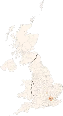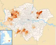 A map showing the distribution of Sri Lankans in Greater London. Two-thirds of British Sri Lankans live in London.
