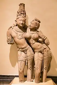 Sculpture of Lakshmi embracing Sriman Narayana