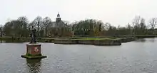 North of the abbey is the site of Egmond Castle in Egmond aan den Hoef. The castle was built by the knight Berwout van Egmond in 1129, who was paid by the Count of Holland to represent him, protect the abbey and collect the rents, as Voogd. This was the origin of the House of Egmond. The relationship quickly turned into a power struggle between the Egmond family and the abbots that lasted for centuries. Just like the abbey, the castle was destroyed in 1573. The chapel was later restored by the Dutch Protestant church, but the castle was never rebuilt. The foundations are still visible and the land surrounding the old moat and foundations has been turned into a park.