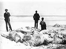 The carcass was first spotted on the evening of November 30, 1896, by two young boys, Herbert Coles and Dunham Coretter, while bicycling along Anastasia Island. The enormous mass was half buried in the sand, having sunk under its immense weight. The two boys thought the carcass was the remains of a beached whale, as a similar stranding had occurred two years earlier near the mouth of the Matanzas River, located several miles to the south of St. Augustine (see map).