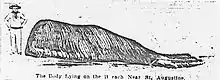 In the first days of December 1896, Dr. George Grant, owner of a hotel at South Beach on Anastasia Island, wrote a short article describing the carcass, which was published in the Pennsylvania Grit of Williamsport on December 13. The article was accompanied by a picture of the "sea monster" depicting a tentacled creature with a tail. This was drawn by the draughtsman of the newspaper based on Grant's description, and not an eyewitness. Grant's description was as follows:[6]