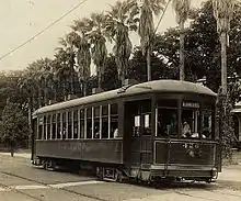 While the city's first experiments with electric-powered cars were made in 1884 (in conjunction with the World Cotton Centennial World's Fair), electric streetcars were not considered sufficiently developed for widespread use until the following decade, and the line was electrified February 1, 1893.[3] At the same time, it was extended from the corner of St. Charles and Carrollton Avenues out Carrollton to a new car barn at Willow Street.[6]