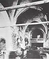The church was a ruin until 1926. A plan to make it the centre of a community hall with a restaurant, or a museum, was declined by the conservator (Landeskonservator) Johannes Körner, who demanded that the Romanesque building should be restored without alterations. He could not prevent the building of a war memorial with a sculpture of Michael the archangel next to the steeple, which led to the name "Michaelisbau".[4]
