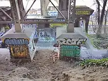 In March 2019, a partially finished elaborate illegal skate park was discovered in the bridge's cable house located under the west side of the bridge.[16][17] Following concerns about the skatepark's impacts on structural integrity of bridge, it was torn down in 2020.[18]